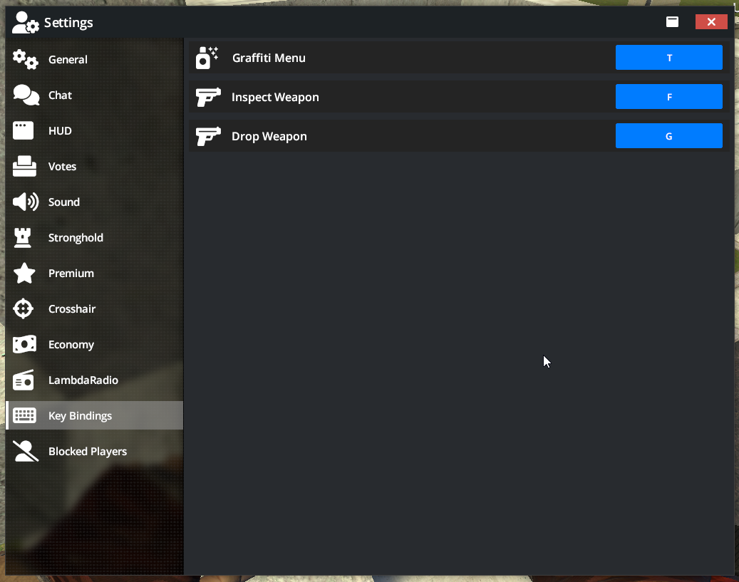 We would like to have as many of the features easily available to players as possible, as such certain functionality such as weapon inspecting and graffiti required the user to make a bind manually, with this update, this is no longer the case.